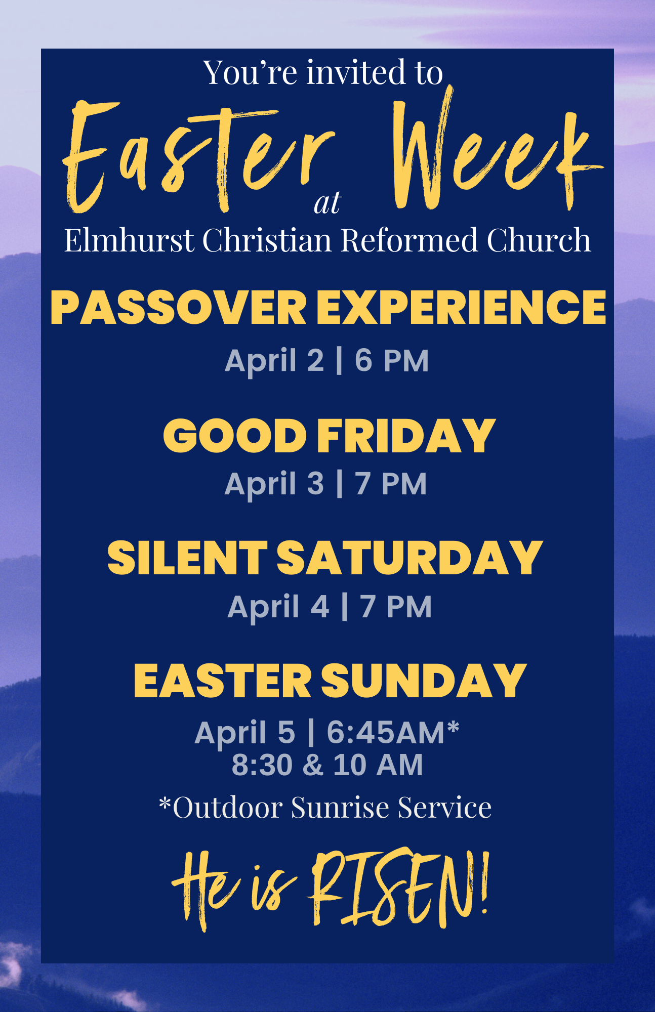 Experience the whole story of hope (and celebrate) this Easter at Elmhurst Christian Reformed Church.